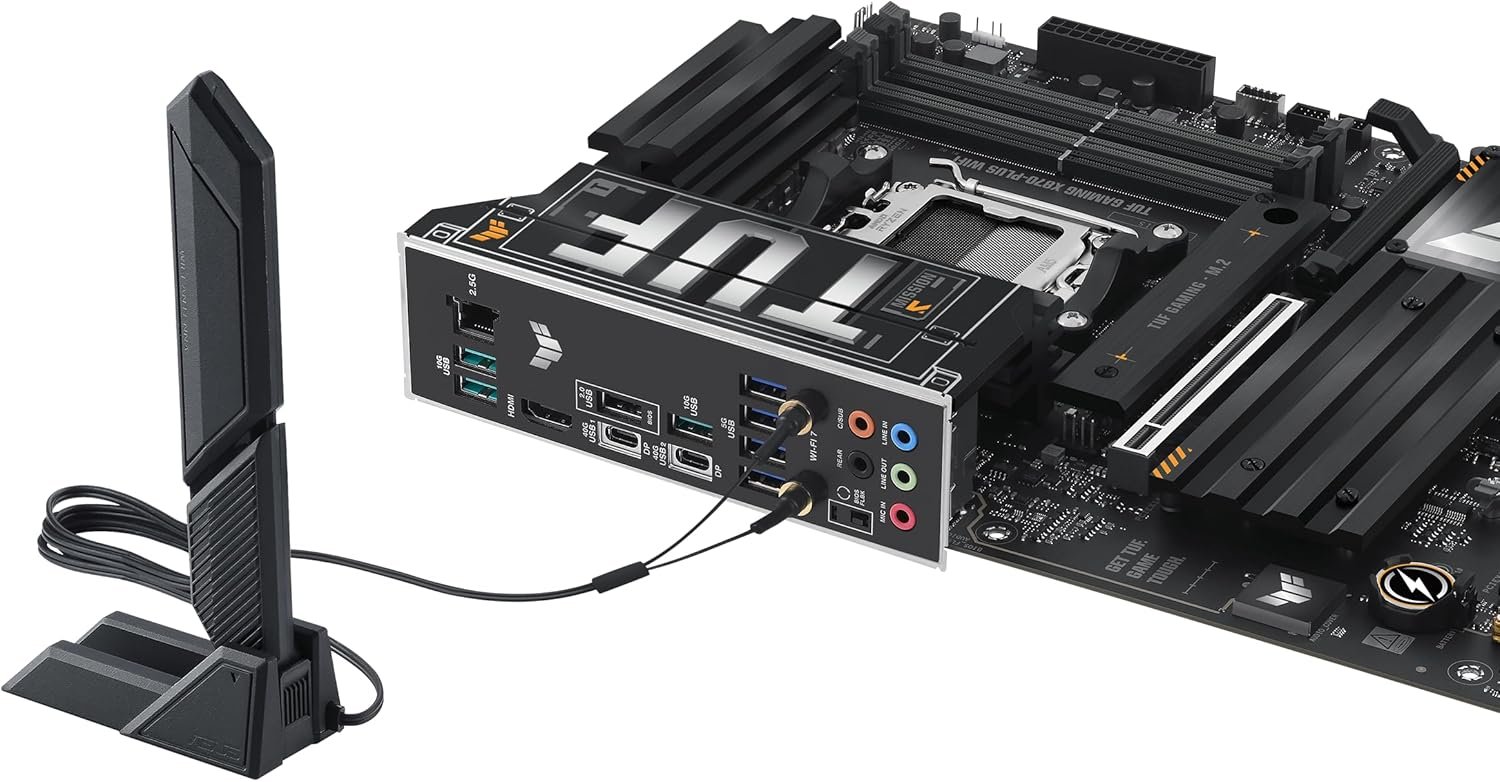 ASUS TUF Gaming X870-PLUS WiFi AMD AM5 X870 ATX Motherboard, 16+2+1, 80A SPS Power Stages, DDR5, PCIe 5.0 Ready, Four M.2 Slots, Wi-Fi 7, 2.5Gb LAN, HDMI, USB4® 40Gbps, SATA 6 Gbps, USB 20Gbps Type-C