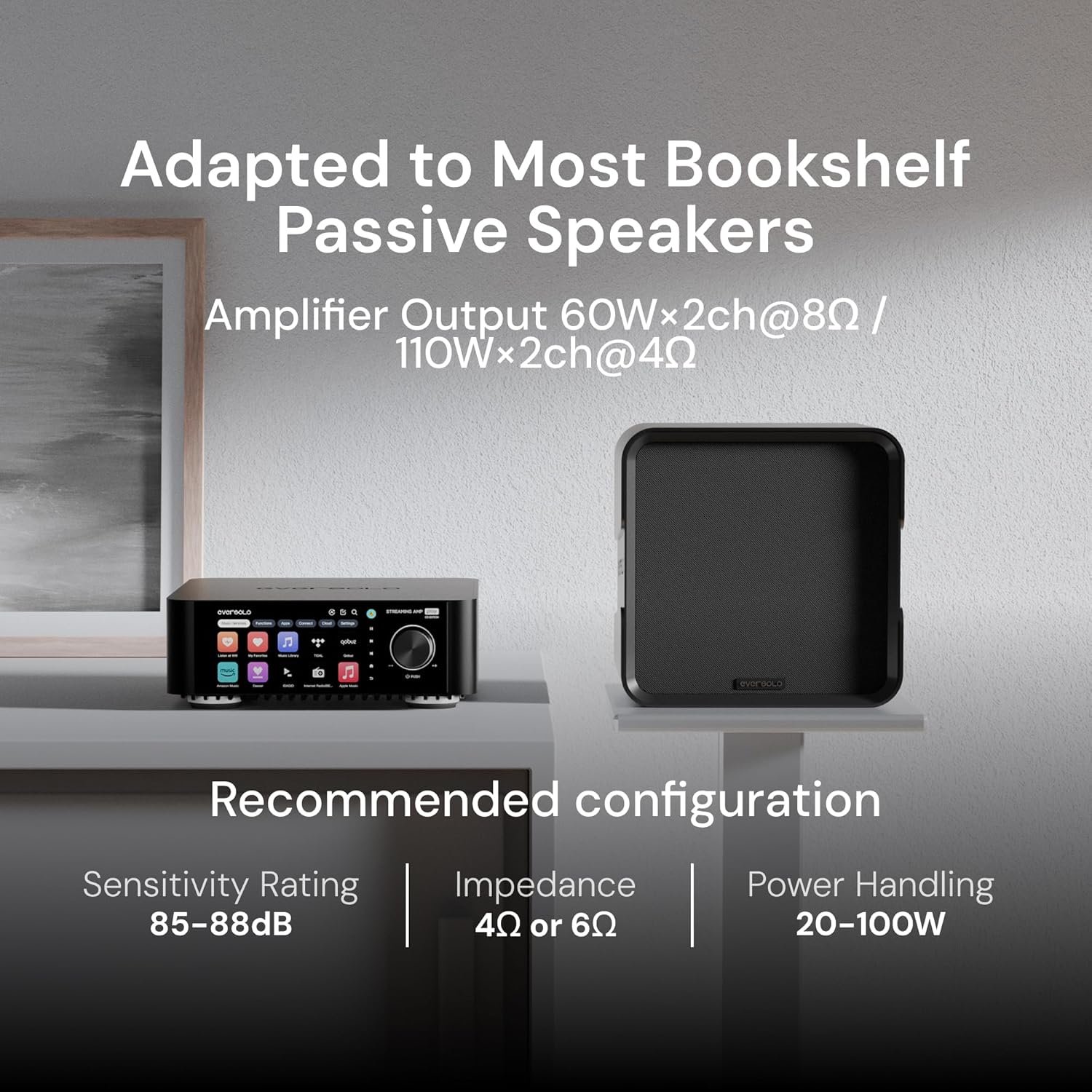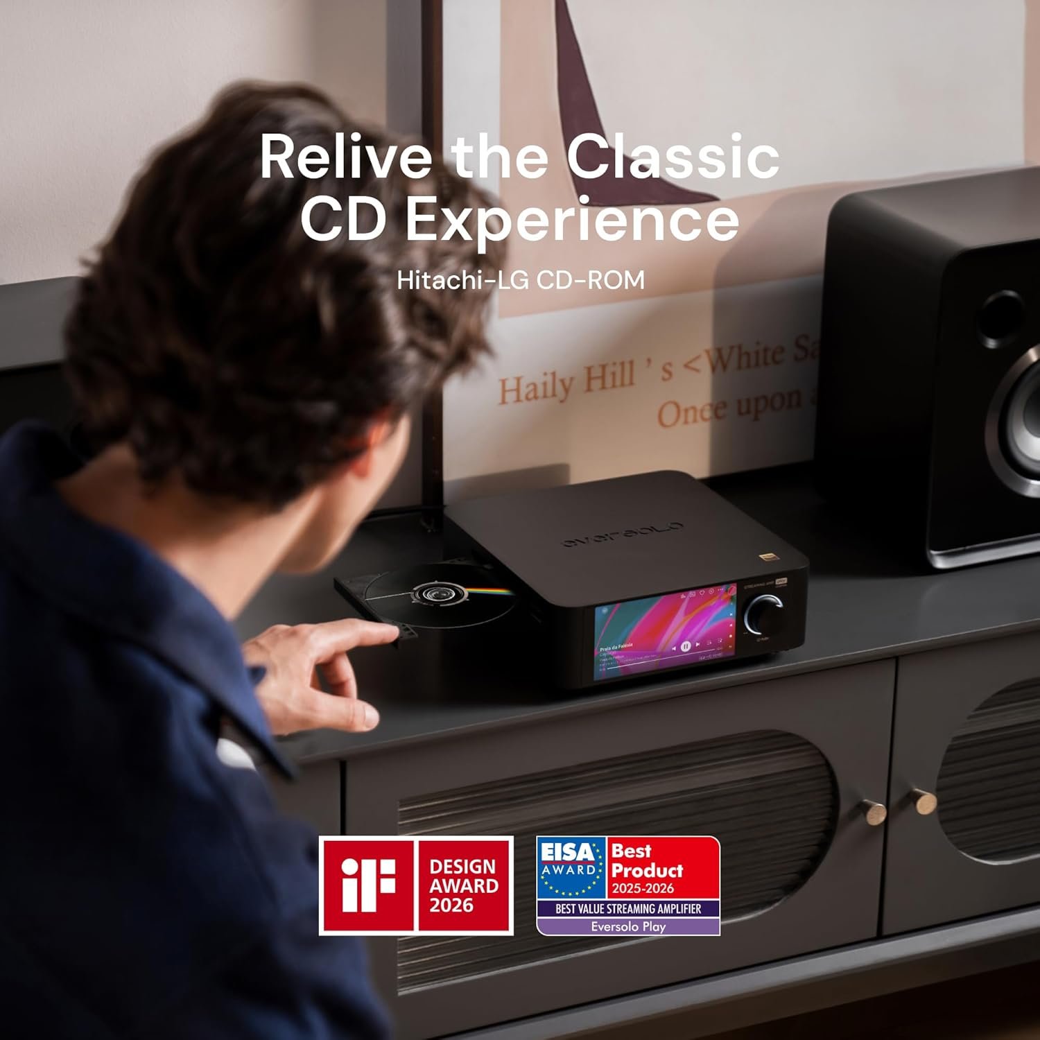 Eversolo Play | Music Streamer with DAC & Amplifier 60W×2ch(8Ω) / 110W×2ch(4Ω) | 5.5″ LCD Touchscreen, Support Room Correction & Multi Room System, Stream Qobuz, Tidal&More | Black (CD Edition)