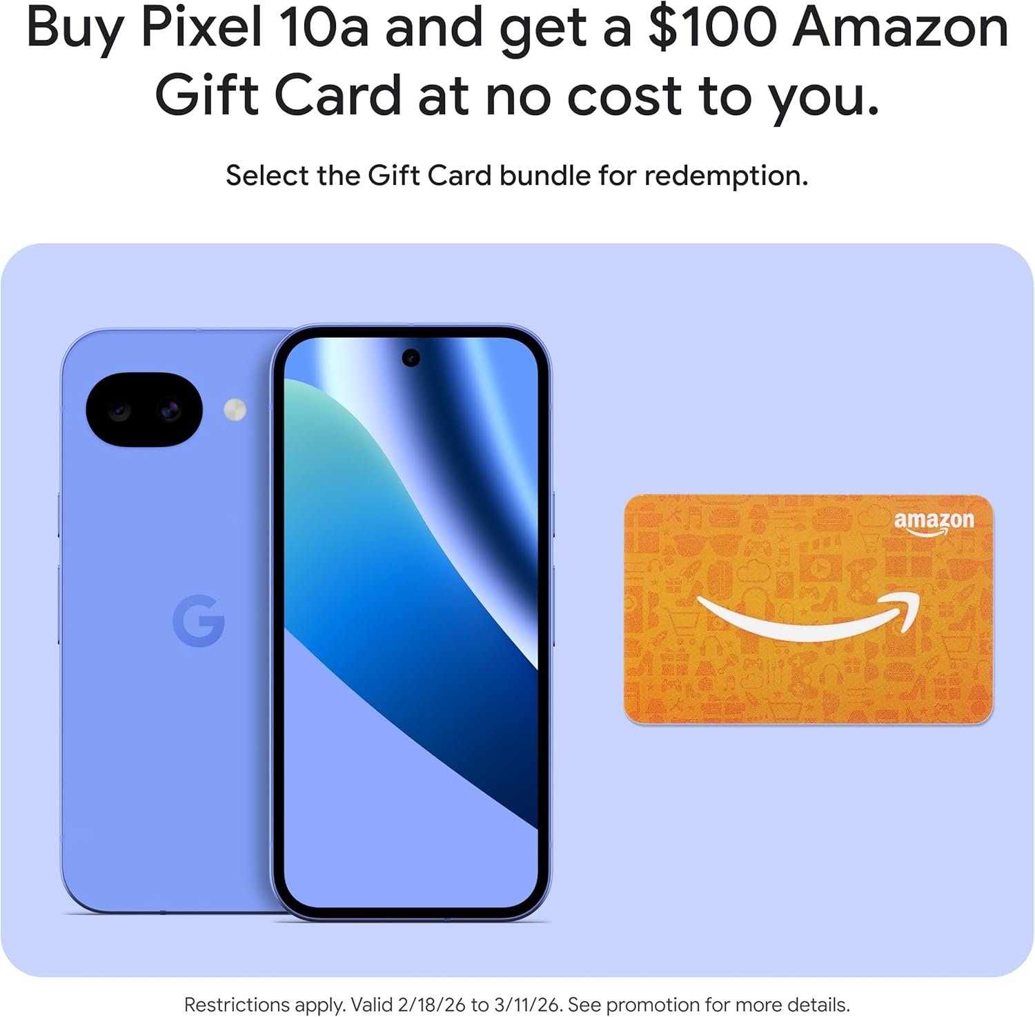 Google Pixel 10a – Lavender – 128 GB with $100 Amazon Gift Card