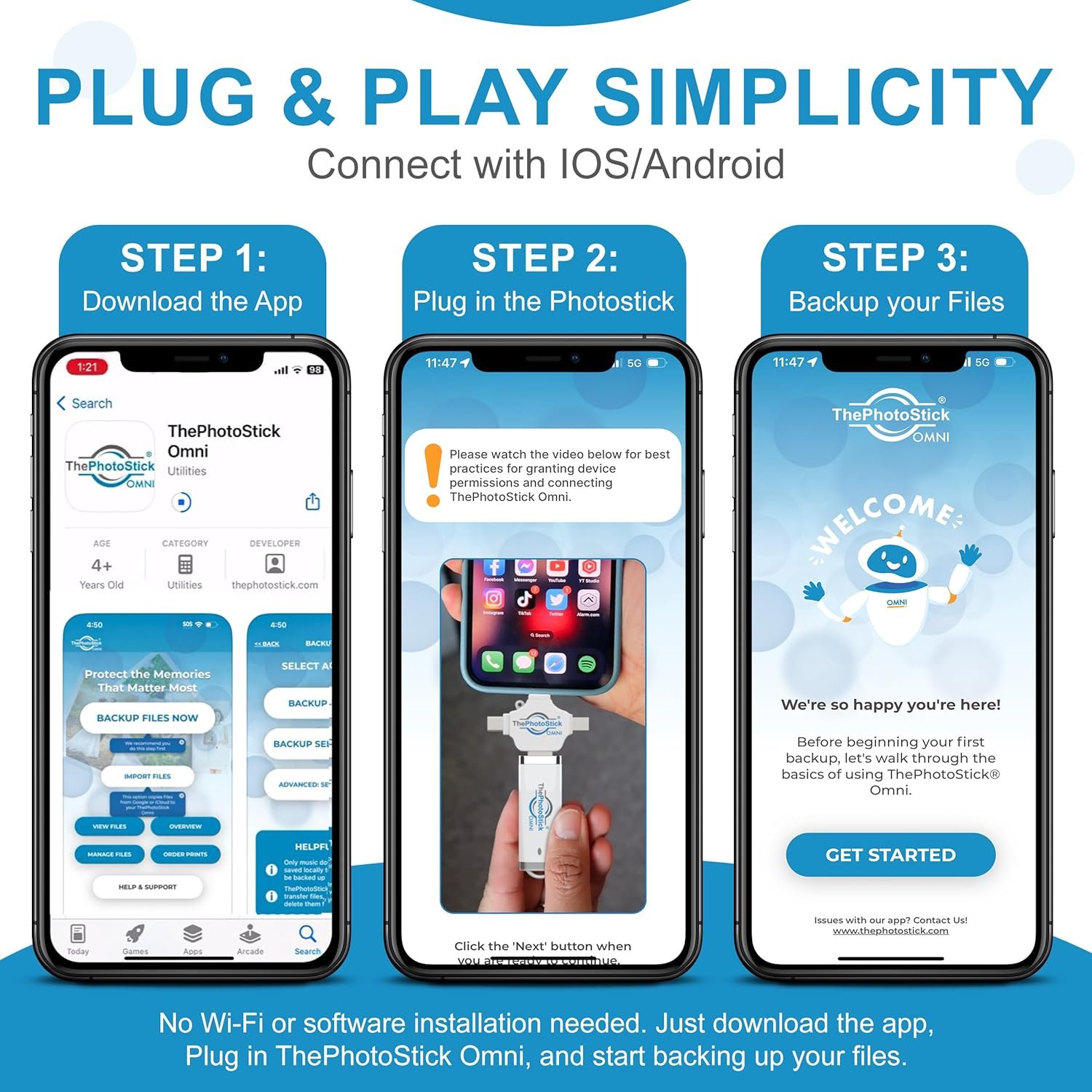 ThePhotoStick® Omni 32GB Memory Stick & USB Flash Drive – Photo & Video Backup for iPhone, Android, Mac & PC – Multiport Connection to Easily Store & Transfer Files