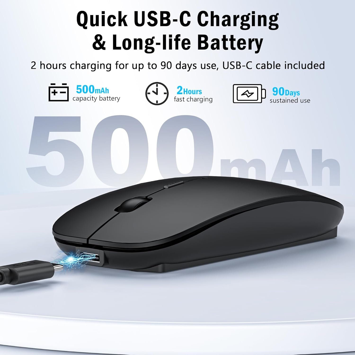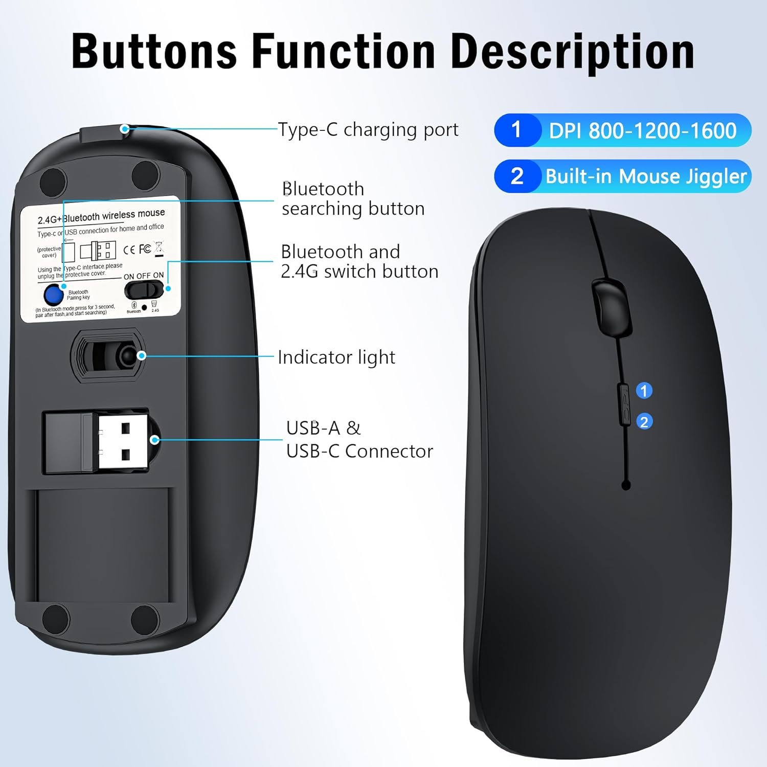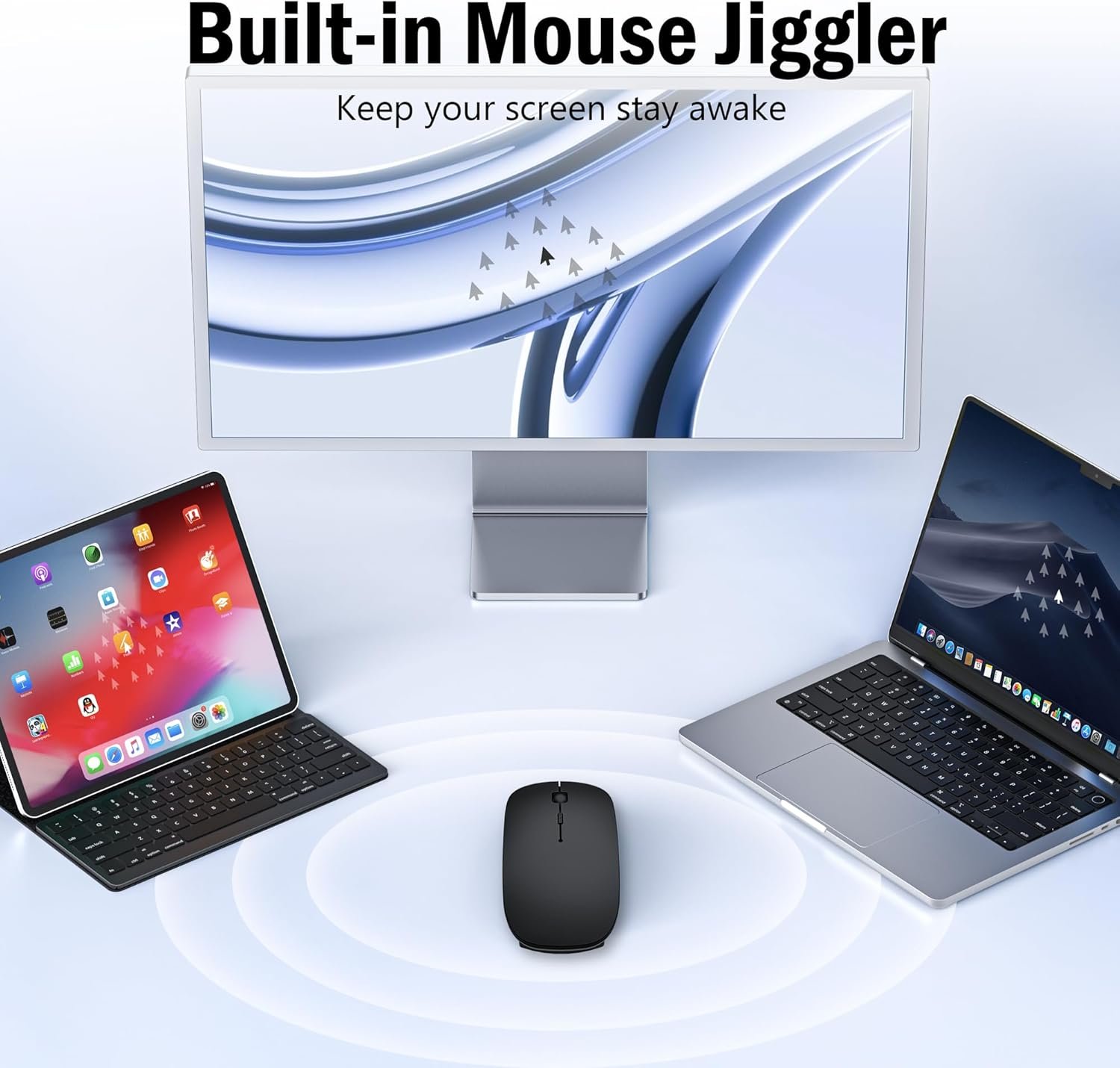 Wireless Mouse for MacBook Air Pro Mac iPad, Bluetooth Rechargeable Laptop Mice with Jiggler Mode, Silent 3 Mode Bluetooth 5.2/3.0 & 2.4G USB-A & USB-C Receiver Portable Mouse, Matte Black